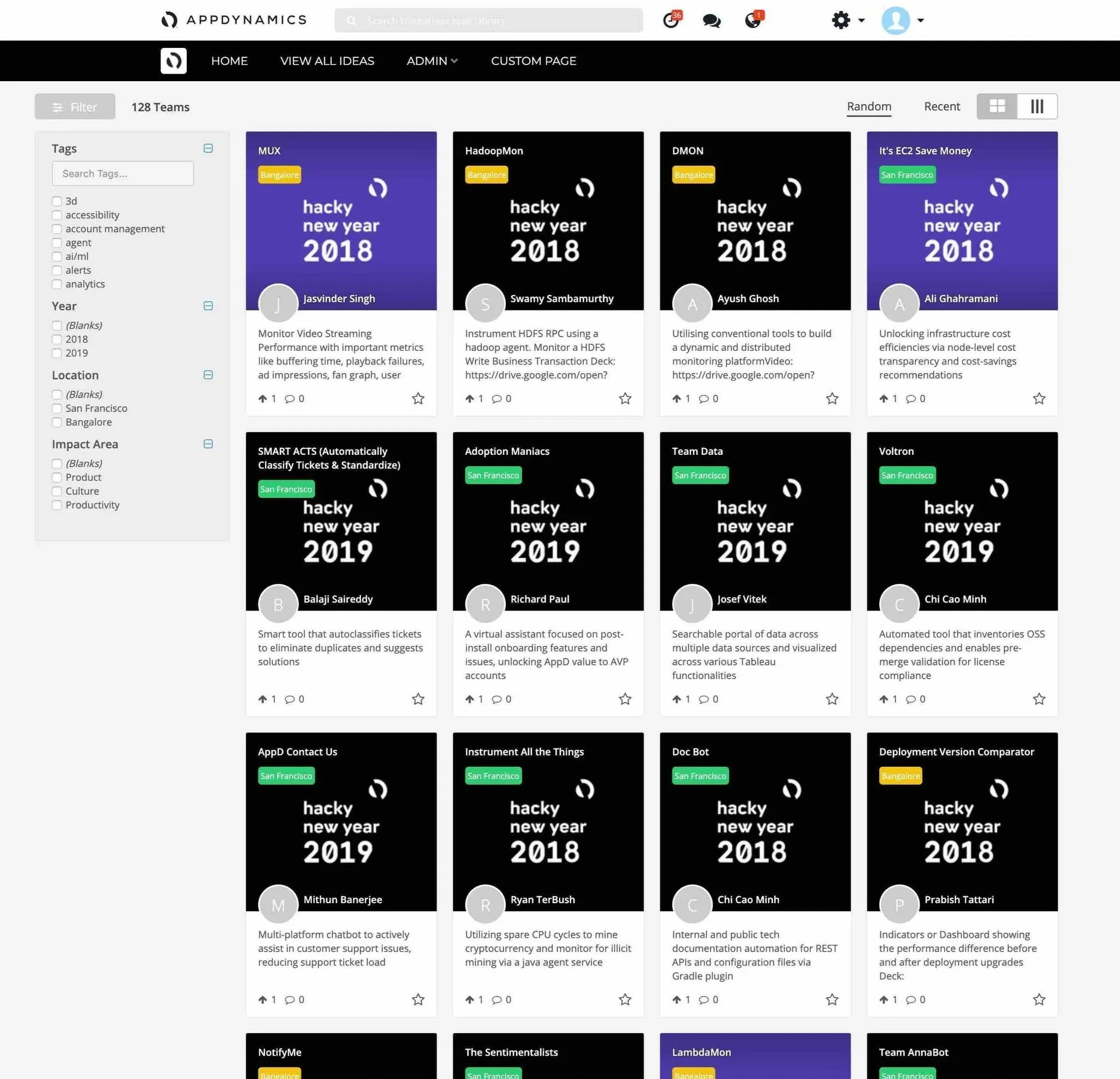 We named the annual innovation kickoff, Hacky New Year. This site documented all projects and encouraged the company to upvote their preferences.